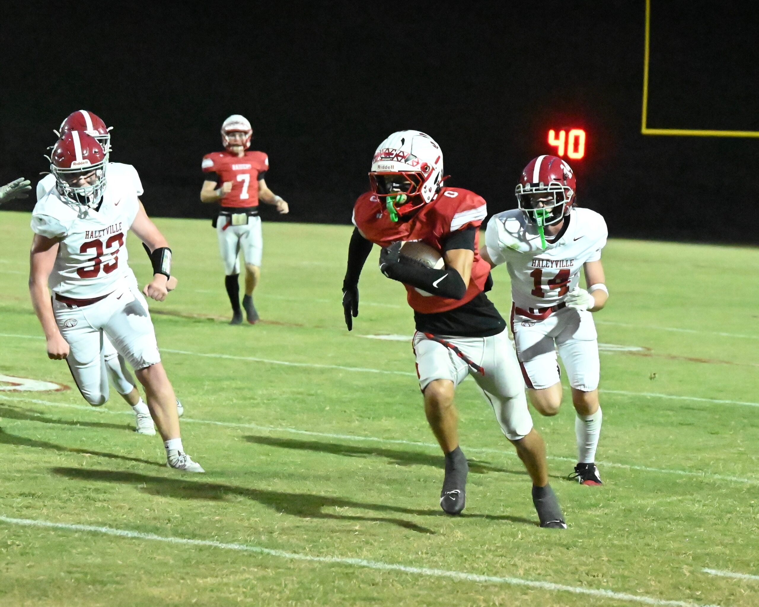 Drake got loose for a 75-yard touchdown run later in the second to make it a 35-0 game and Cody Stevens intercepted a Haleyville pass and returned it 50 yards for a Raider touchdown to give Good Hope a commanding, 42-0 lead at halftime.