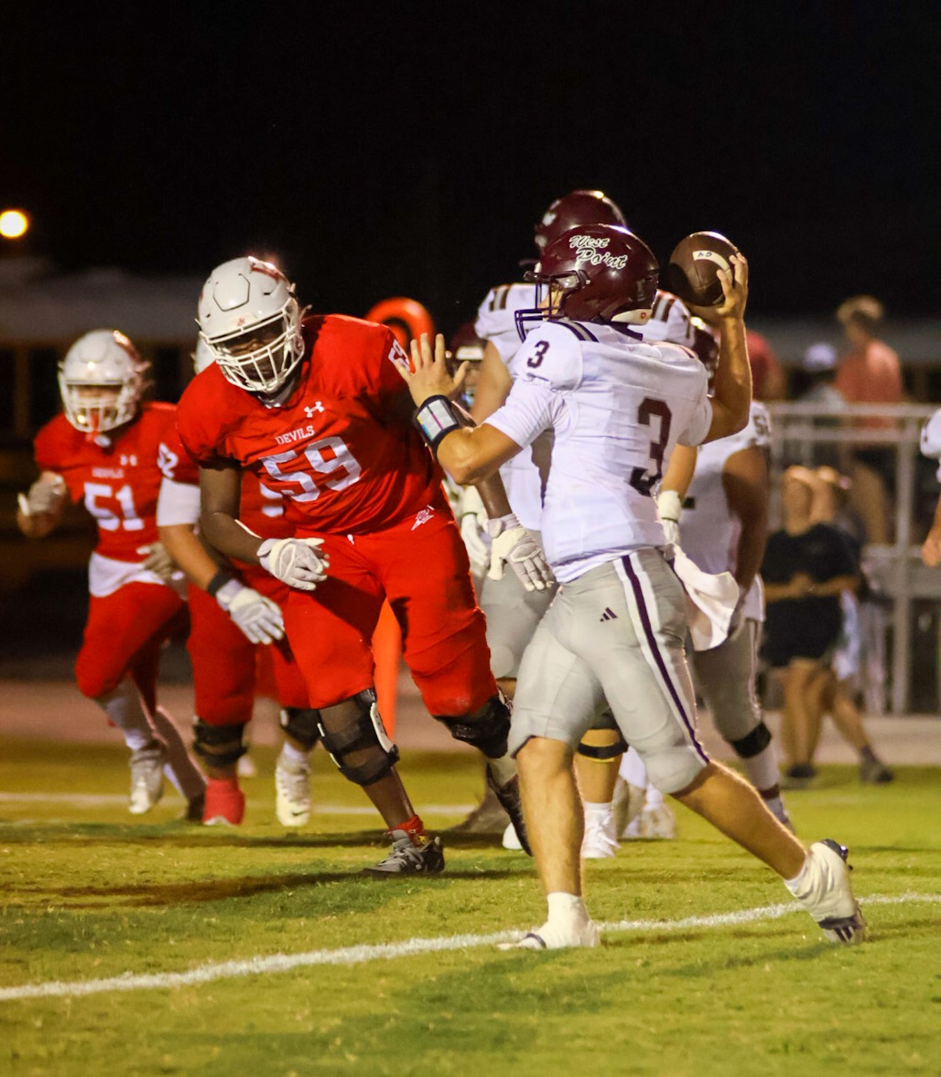 MOULTON, Ala. – The West Point Warriors hit the road for a big region battle at Lawrence County Friday night and they returned home with a big win. The Warriors built a 21-8 lead in the first half and tacked on three more scores in the second half to collect a comfortable, 41-8 win over the Red Devils.