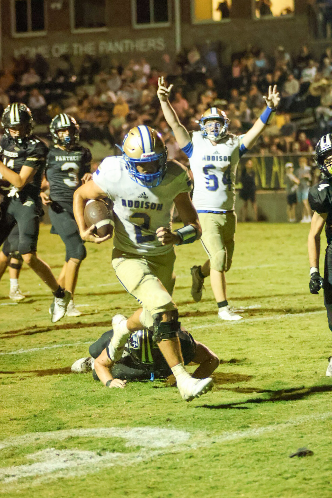 Both defenses settled in and after four consecutive punts, Addison took over at the Panther 40. Addison’s Roberts found TE Major Snoddy for a 7-yard touchdown pass and the two-point conversion was good as Connor Lane found Michael Lee for the pass and catch. The ball actually bounced off a Panther defender and right into the hands of Lee.
