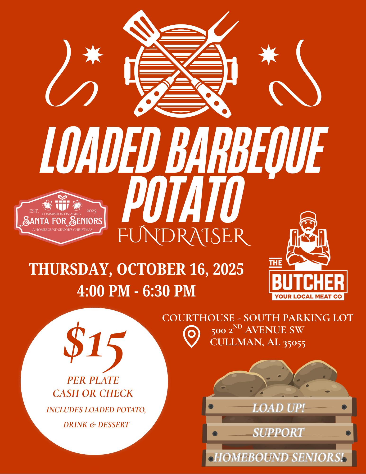 CULLMAN, Ala. – The Cullman County Commission on Aging will host a loaded barbecue potato fundraiser on Thursday, Oct. 16, from 4-6:30 p.m. in the Cullman County Courthouse’s south parking lot.