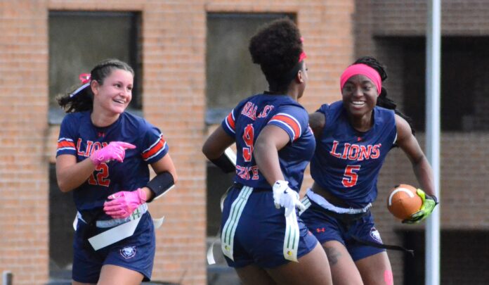HANCEVILLE, Ala. — Wallace State flag football left no doubt on Wednesday afternoon, dominating from start to finish in a pair of conference matchups against Northwest Shoals at home. The Lions took game one 77-6 and the momentum continued in game two with a 70-0 victory.