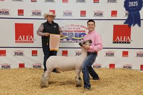 Evan Roden of Cullman County exhibited the Fourth Overall Champion Ewe in the Youth Sheep Show at the Alabama National Fair Oct. 11, in Montgomery. It was also the Reserve Champion Alabama Born & Bred and Reserve Champion Blackface Cross. Alabama Farmers Federation and Alfa Insurance sponsored youth livestock events at the fair. Adam Heffelinger of Indiana judged the show.