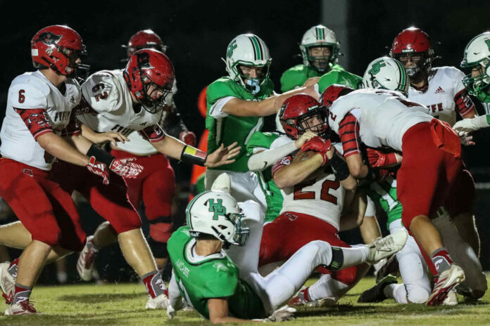 HOLLY POND, Ala. – Holly Pond was back home for a region battle against third-ranked Fyffe Friday night and the Red Devils gave the Broncos trouble early. Fyffe built a commanding, 34-6 lead in the first half and kept Holly Pond at arm’s length the rest of the way, pulling away to win it 54-14.