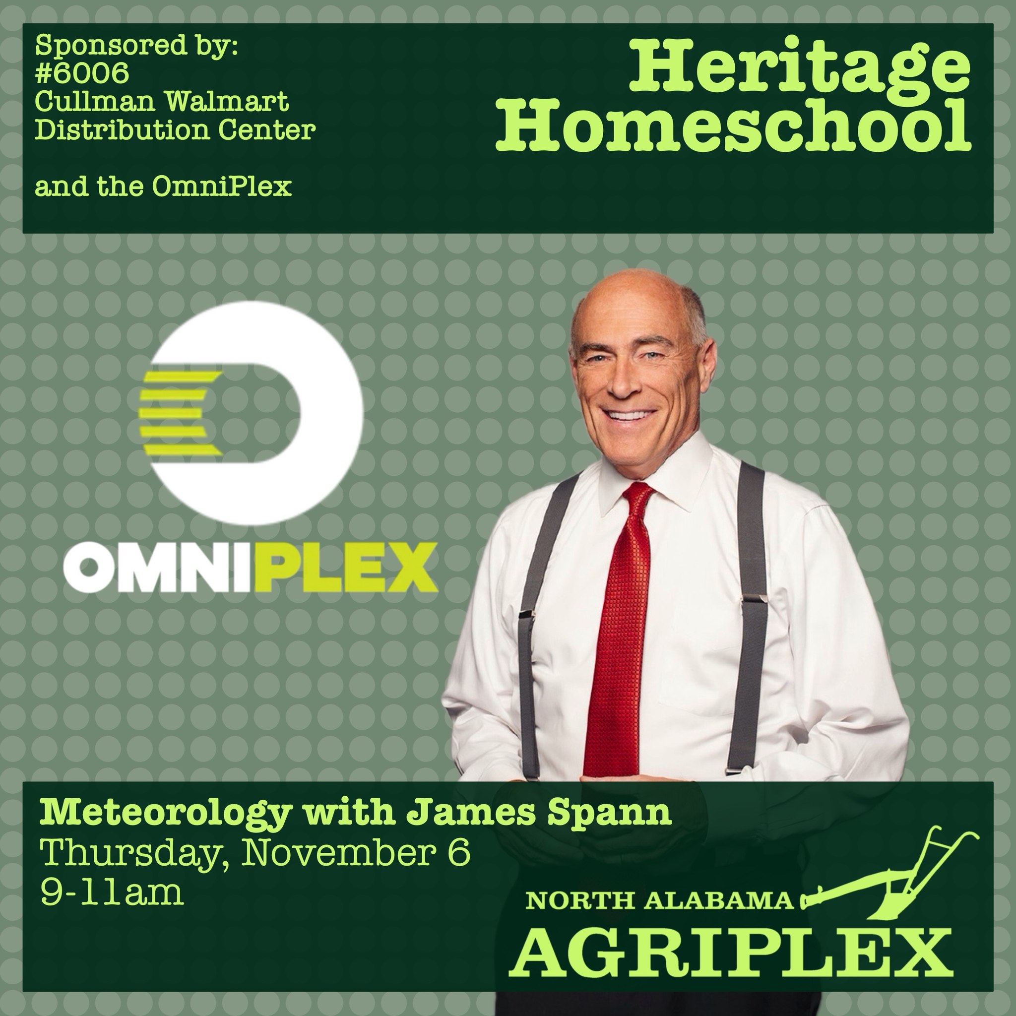 CULLMAN, Ala. – James Spann will be the special guest at this month’s North Alabama Agriplex Heritage Homeschool event on Thursday, Nov. 6, from 9-11 a.m. at the OmniPlex.