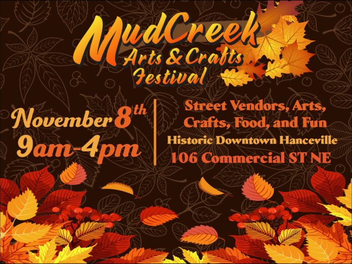 HANCEVILLE, Ala. – The 15th annual Mud Creek Arts & Crafts Festival will take place Saturday, Nov. 8, from 9 a.m.-5 p.m. in historic downtown Hanceville at 106 Commercial St. NE. The day-long street festival is free and will feature dozens of arts and crafts vendors, kids’ activities and plenty of food from both food trucks and local eateries.