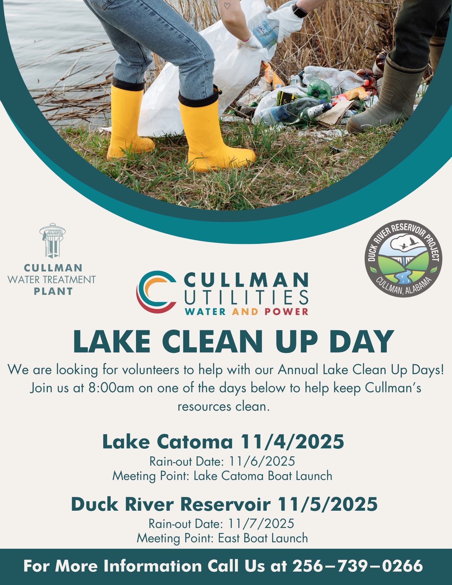 CULLMAN, Ala. – Two annual clean-up events are scheduled for early November, inviting volunteers to help preserve and protect Cullman’s valuable lake resources.