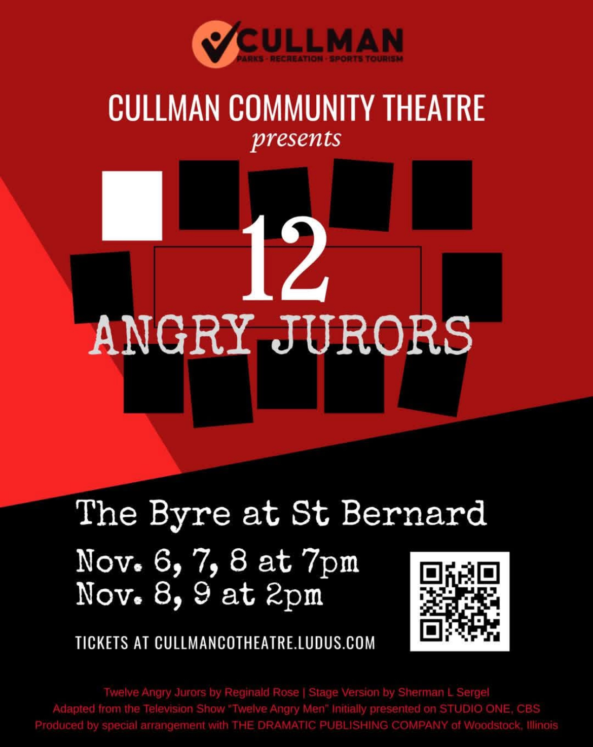 CULLMAN, Ala. – The Cullman Community Theatre is trading in musical numbers for high-stakes deliberation with its newest production, “12 Angry Jurors,” opening Thursday, Nov. 6, at The Byre at St. Bernard.