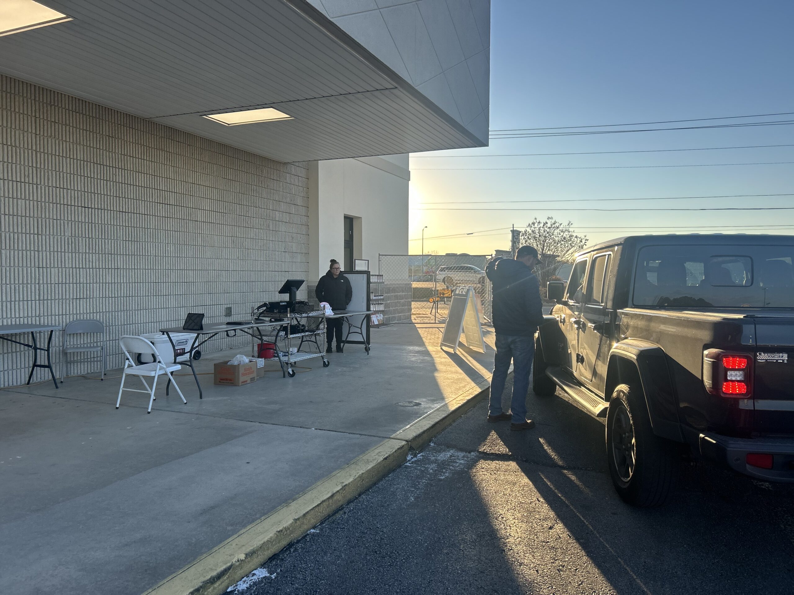 Opening day on Nov. 17 brought a strong response, despite ongoing construction. The store served customers and is preparing for a busy Thanksgiving week. Because the interior space is not yet completed, customers are currently being served from an outdoor kiosk located between Honey Baked Ham and Farmers Home Furniture.