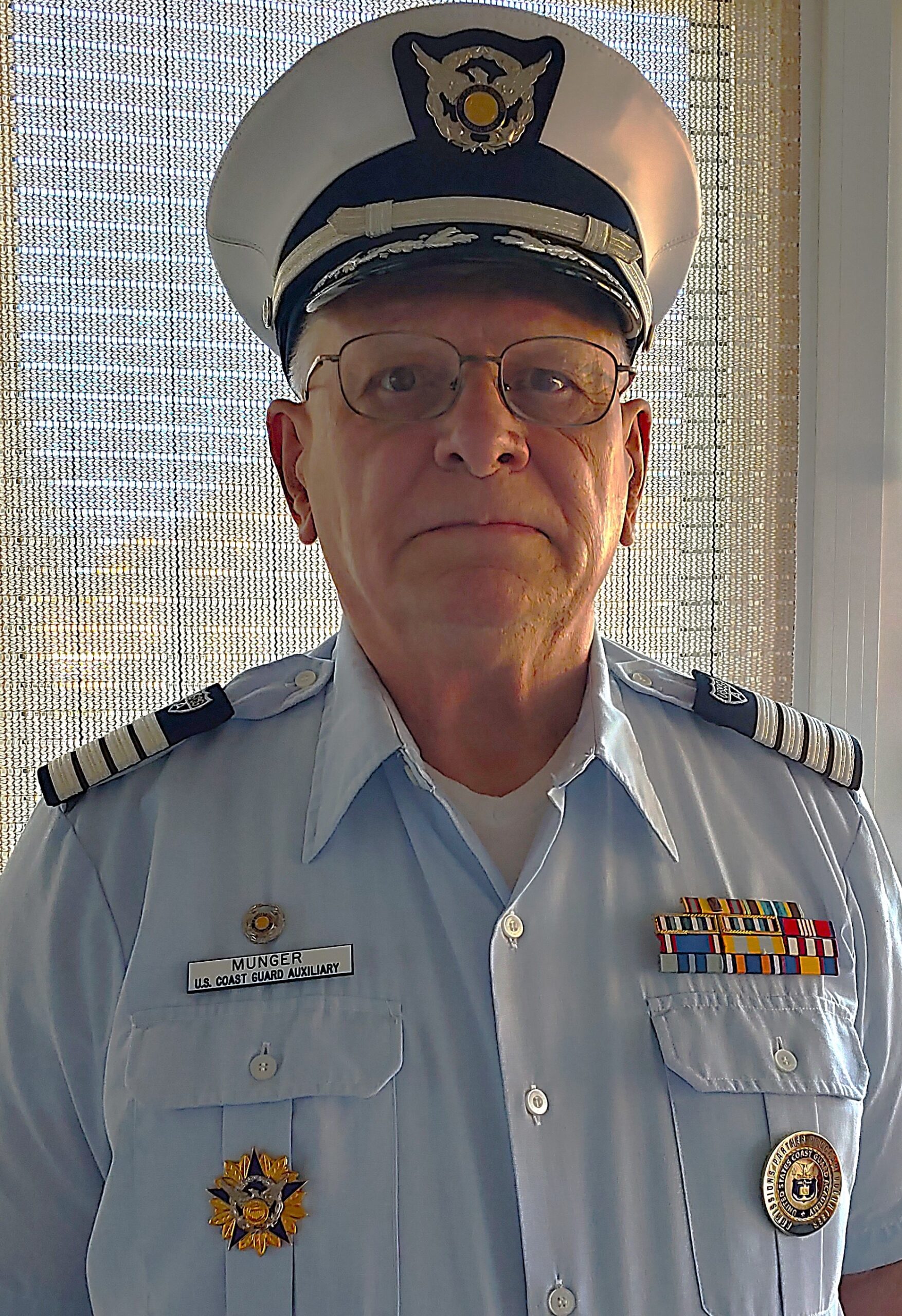 Munger stated, “It has been and continues to be an honor and privilege to serve as member of the United States Coast Guard Auxiliary. The Auxiliary is often referred to as a ‘force multiplier’ as we work side-by-side with the Active Duty and Reserve Forces of the United States Coast Guard. It is our mission to promote and improve recreational boating safety, provide trained crew and facilities to augment the Coast Guard, enhance the safety and security of our ports, waterways and coastal regions, and support Coast Guard operational, administrative and logistical requirements.