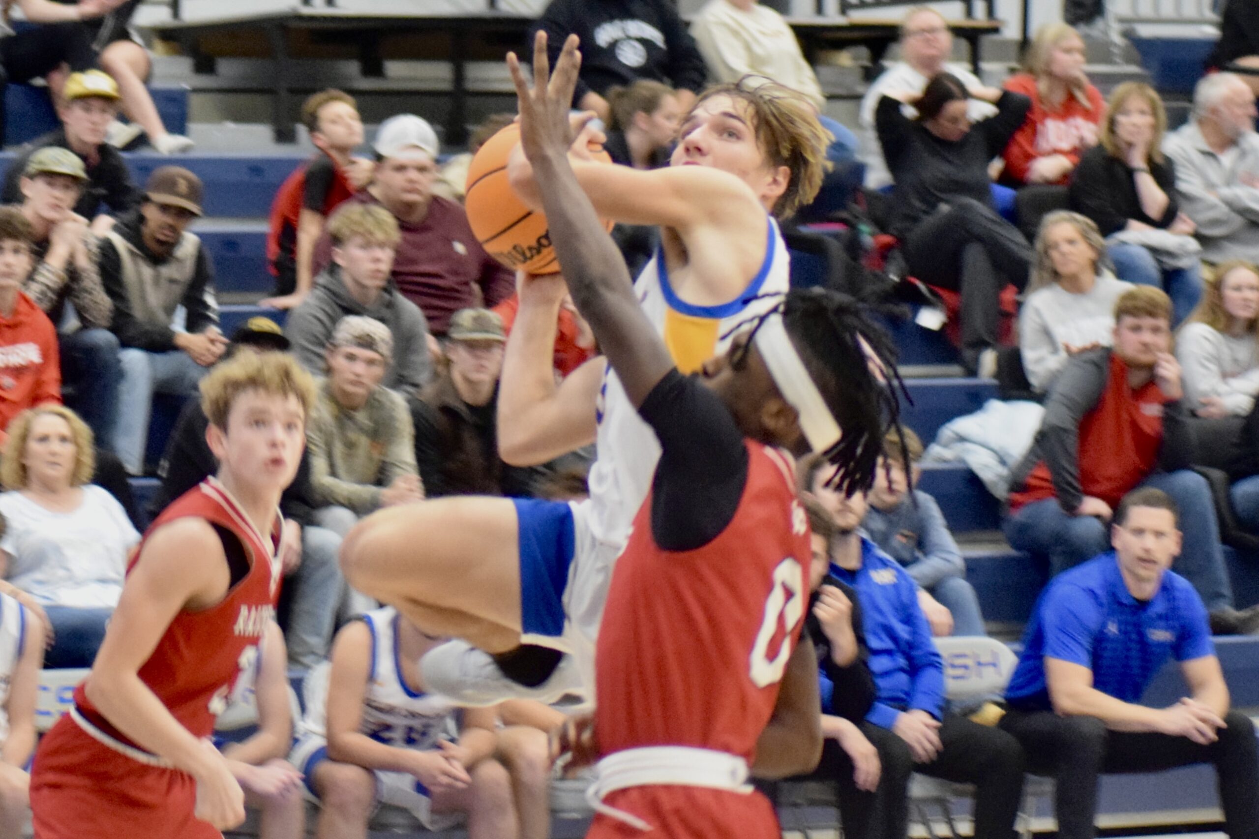 Cayden Adamson buried a trey from the left corner to cut it to 25-16 early in the third quarter. Cold Springs, though, went on a little run to stretch their lead out even more as a basket down low by Hallmon, five straight points by Ayden Black, a steal and a layup by Day and a free throw by Hallmon made it a 35-16 game. The Raiders countered with a run of their own. Screws scored in the paint, then Sims drained a trey from the right corner, and Kye McSwain hit a basket down low to make it a 35-23 game late in the third quarter. Day hit a pair of free throws, and Ian Moody hit a basket to make the score 37-25 going into what would be an exciting final quarter.