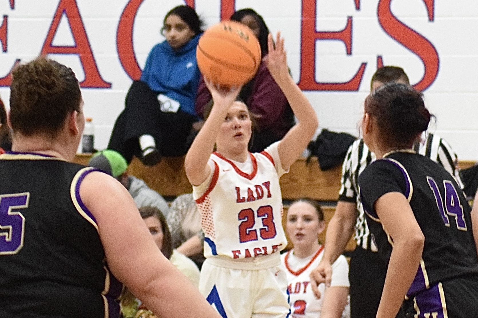 Kerrigon Moore got Hanceville on the scoreboard first on a basket down low, but a pair of buckets on the other end by Vayda Yarbrough gave Vinemont an early 4-2 lead. Mattie Keith tied the game at four on a pair of free throws. Caroline Miller hit a pair of free throws, Arleigh Thomason split from the line and Reagan Robinson added a pair from the charity stripe to give the Lady Eagles a 9-4 lead. Robinson put in a driving layup to make it an 11-4 game, but Keith nailed a short jumper, and Alex Twitty added a basket down low to cut it to 13-8 late in the first period. Miller, though, drained a trey to put Vinemont ahead 16-8 going into the second quarter.