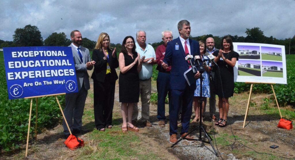 Cullman County Schools Superintendent Dr. Shane Barnette holds a press conference at the site of the planned STEM Academy/Career Center on U.S. Highway 31 on Tuesday, Aug. 12, 2025. (Cullman Tribune file photo)