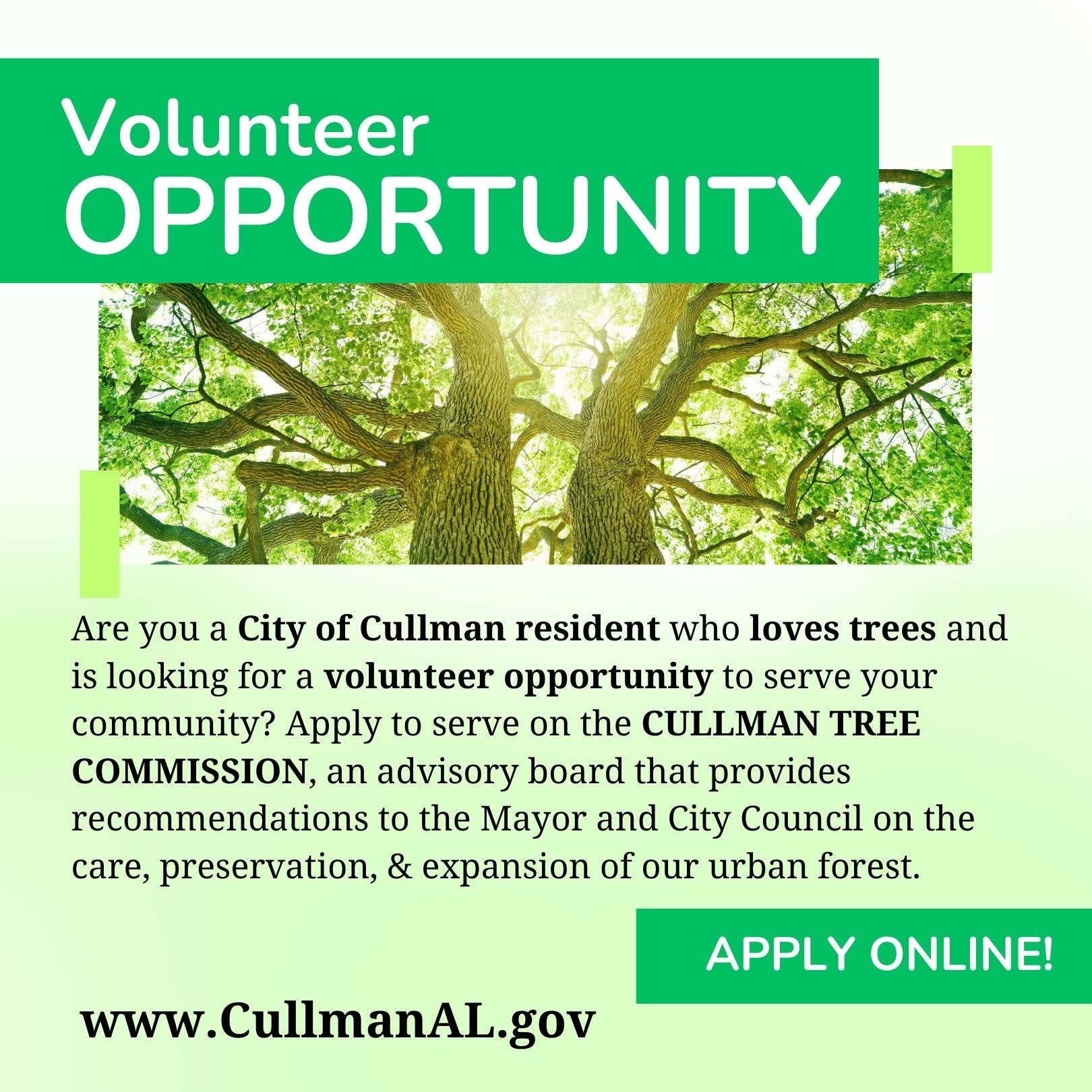 CULLMAN, Ala. – City of Cullman residents who have a passion for trees and community stewardship are encouraged to apply to serve on the Cullman Tree Commission.