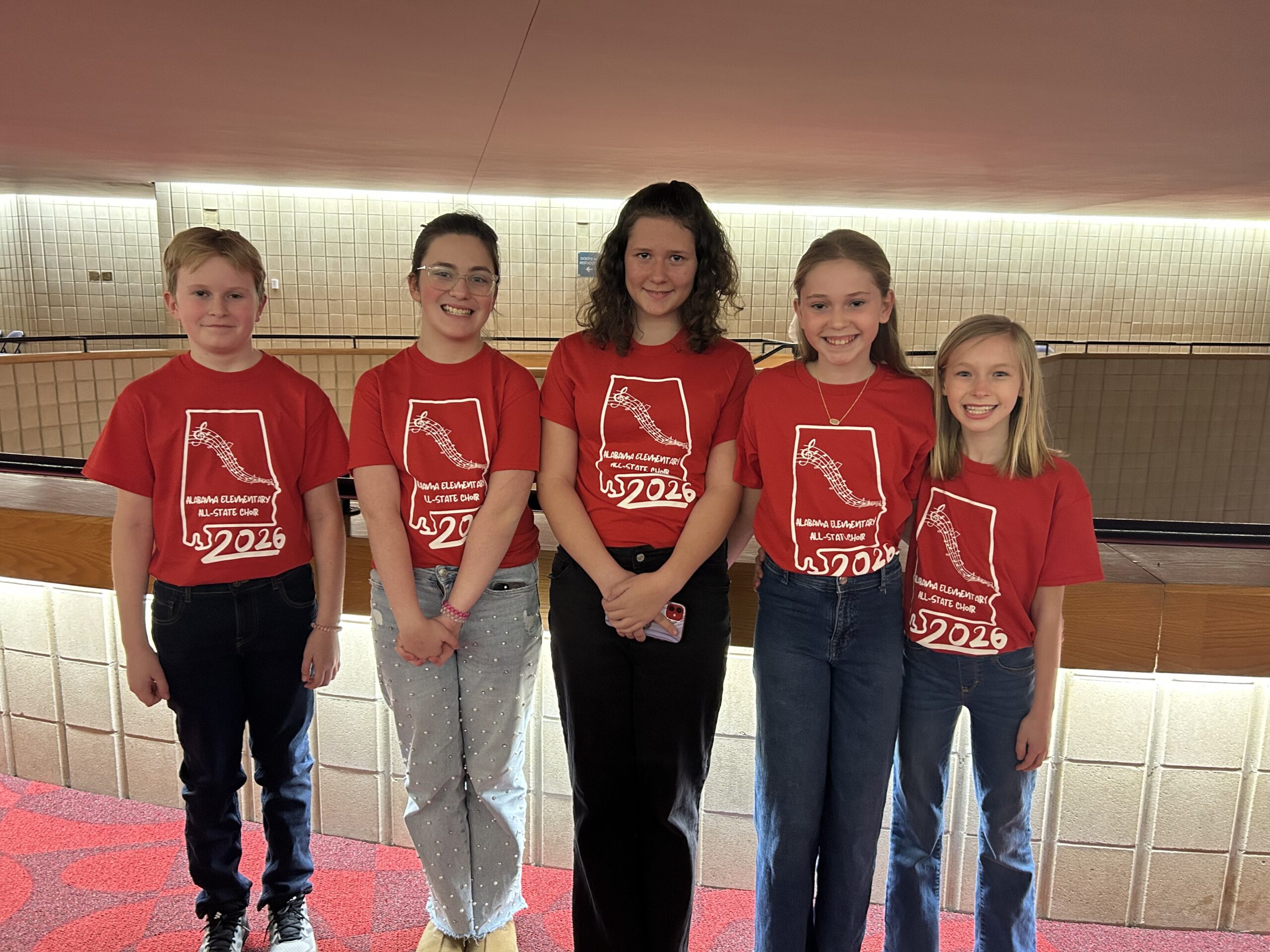 CULLMAN, Ala. – Five students from East Elementary and West Elementary auditioned and were selected for the 2026 Alabama All-State Elementary Choir. This is a biannual event that takes place during the Alabama Music Educators Association professional development conference.