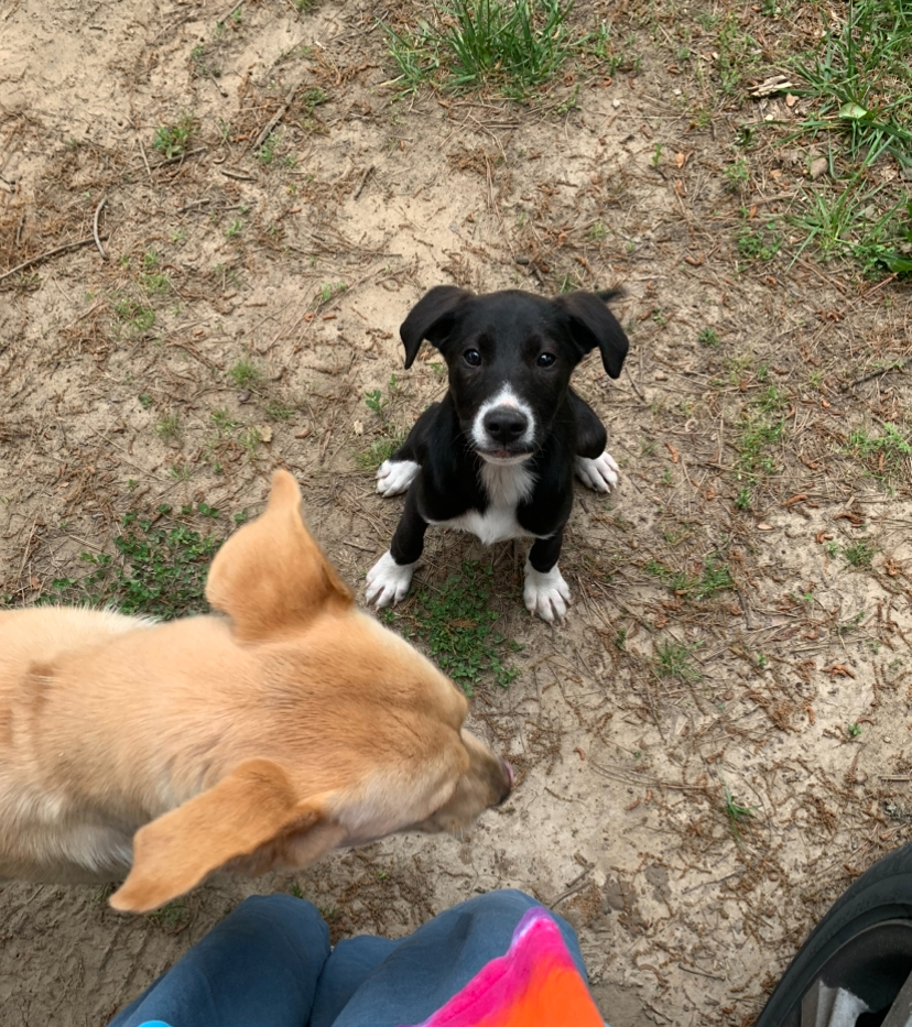 Once I had given them all I had I began to walk home. I didn’t want to try to pet them in case they thought to follow me home. I must have made it 5 feet down the road before I felt the puppy playfully bite at my pants leg. His mother was right behind him. They never left our side from that point on. They flashed us those sweet puppy dog eyes and it was over.