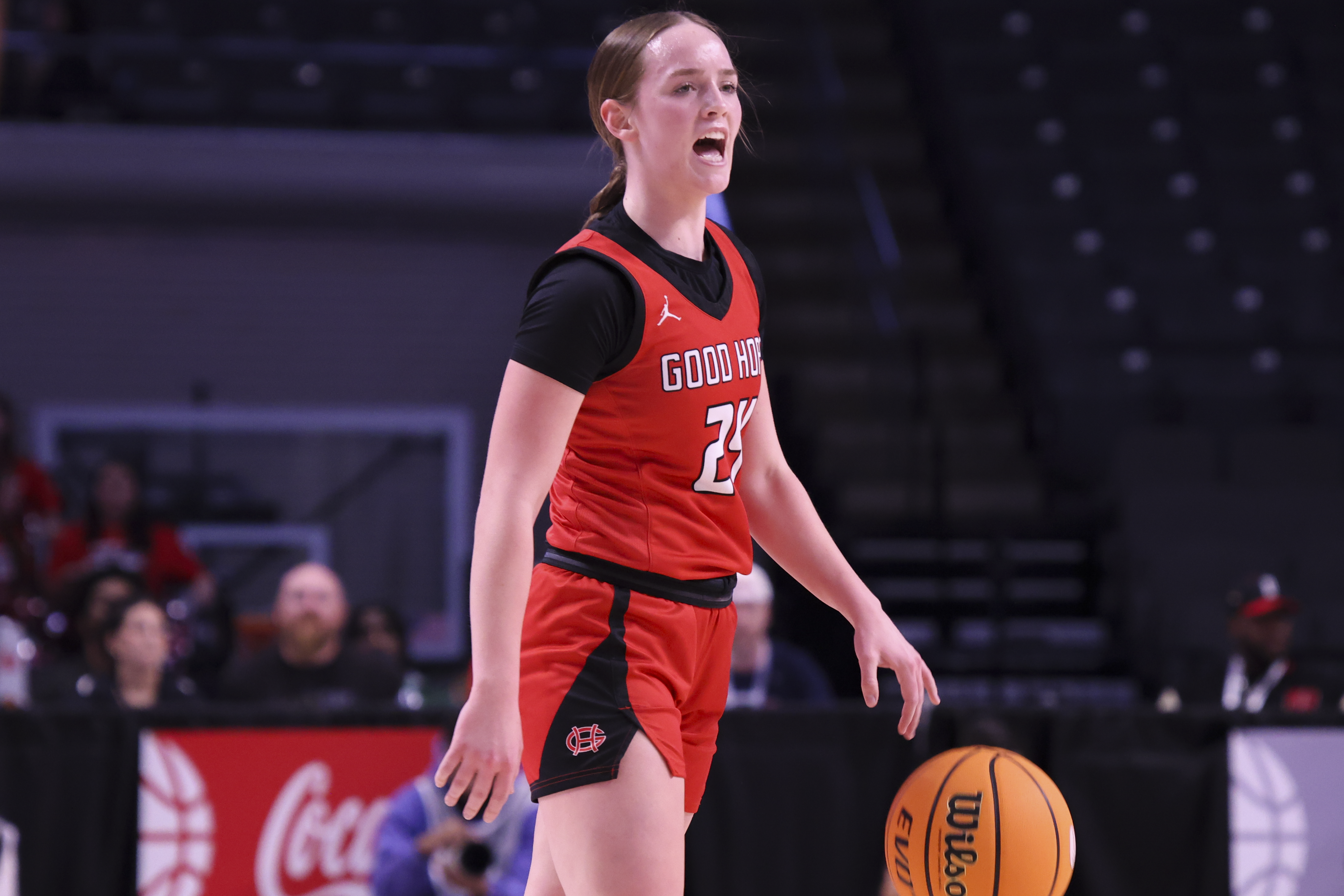 Fourth-ranked Good Hope met a scrappy, physical ninth-ranked Montgomery Catholic team at Legacy Arena on Tuesday afternoon. Good Hope’s identity of team basketball on both ends of the floor were apparent, with smothering defense and physical board work on offense leading to a sizable 27-13 halftime lead. In the second half, despite finding the bucket more, Good Hope was able to hold the Knights off for a 61-45 win.