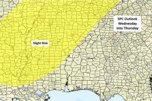 A potent upper-level system will drive a strong cold front through the state Wednesday night through Thursday morning. The latest SPC outlook now has areas near and north of I-59 in a Slight Risk, and additional changes to both locations and potential threats will continue to evolve over the next couple of days.