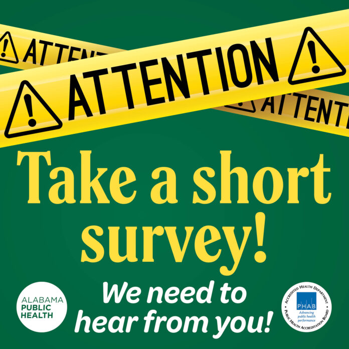 MONTGOMERY, Ala. – The Alabama Department of Public Health’s (ADPH) mission is to promote, protect and improve Alabama’s health and provide the people of Alabama with the highest quality service possible. To reach this goal, ADPH would like to hear from its residents!