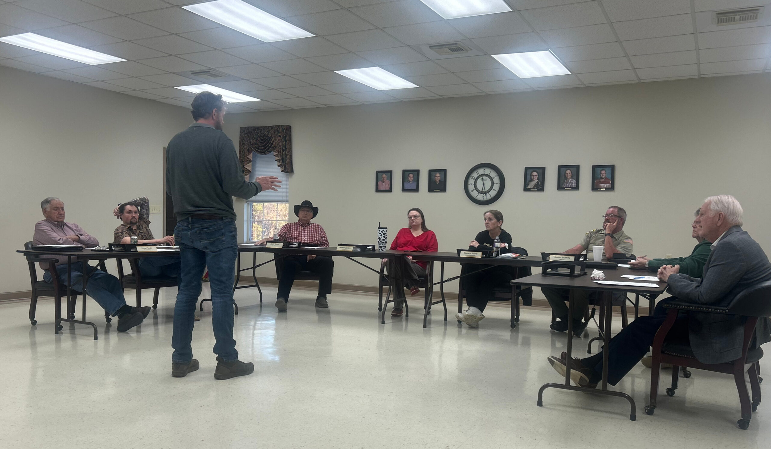 Tim Creel, candidate for Cullman County sheriff, addresses the Dodge City Council on Thursday, March 12, 2026. (Anabelle Howze/The Cullman Tribune)