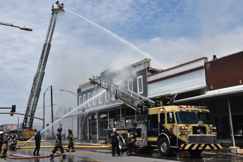 Cullman Fire Rescue crews began responding to the fire around 4 a.m., with law enforcement securing the surrounding area and traffic rerouted through portions of downtown.