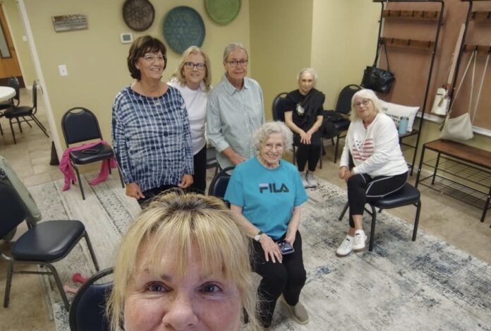 Madara, who encourages and coordinates the church’s senior group called Seasoned Saints, started the class to help people get stronger and steadier, while also building accountability and friendship. The group meets every Tuesday at 10 a.m. in a room on the north side of the church’s lower level. Each session starts with about 15 minutes of balance exercises using a chair, then moves on to around 30 minutes of seated strength training.