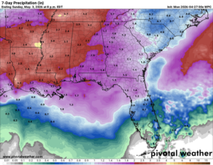 Although not continuous, additional upper-level systems may bring periods of heavy rainfall and some potential for severe weather from Thursday through the weekend over the southern half of Alabama. However, the overall severe threat is low at this time.