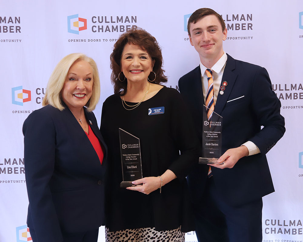 HANCEVILLE, Ala. – Wallace State Community College recently announced Student of the Year and Teacher of the Year awards, presented Thursday, April 24, during the Cullman Area Chamber of Commerce’s State of Education breakfast.